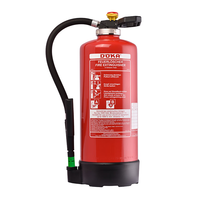 In foam cartridge extinguishers, the foam concentrate and water are kept separate. The two components are only mixed when the extinguisher is used.