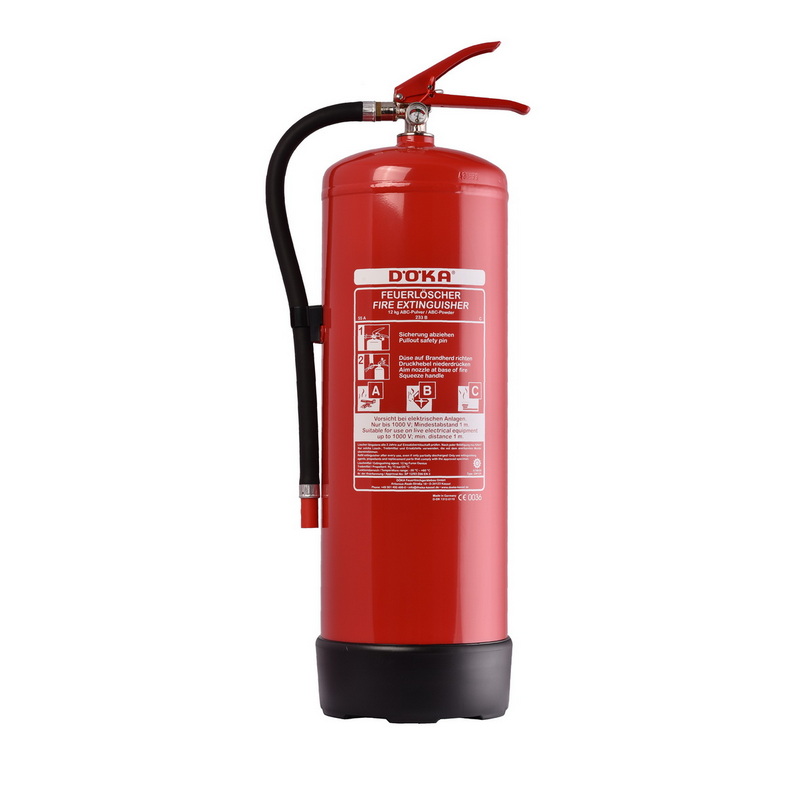The DÖKA permanent pressure powder fire extinguishers are equipped with an extinguishing agent container made of quality sheet steel. The high-quality polyester resin coating is tough and weatherproof and protects the extinguishing agent container from corrosion. The metal fitting with pressed brass body is equipped with a pressure gauge and a separate test valve as standard.