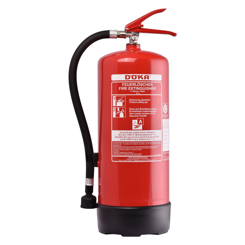 The DÖKA permanent pressure water fire extinguishers are equipped with an extinguishing agent container made of quality sheet steel. The high-quality polyester resin coating is tough and weatherproof and protects the extinguishing agent container from corrosion. The metal fitting with pressed brass body is equipped with a pressure gauge and a separate test valve as standard.